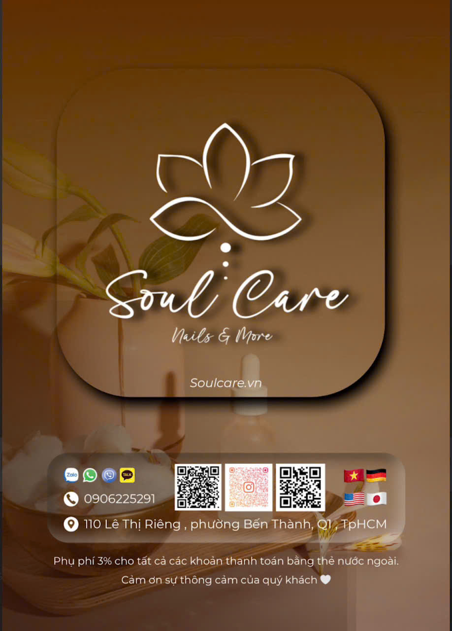 Soul Care Spa là địa điểm lý tưởng để bạn thư giãn và chăm sóc sắc đẹp. Chúng tôi mang đến các dịch vụ chất lượng cao, từ chăm sóc da, gội đầu dưỡng sinh, massage thư giãn đến làm móng chuyên nghiệp. Với đội ngũ chuyên viên lành nghề, không gian sang trọng và các sản phẩm cao cấp, Soul Care Spa cam kết đem lại trải nghiệm tốt nhất cho khách hàng.